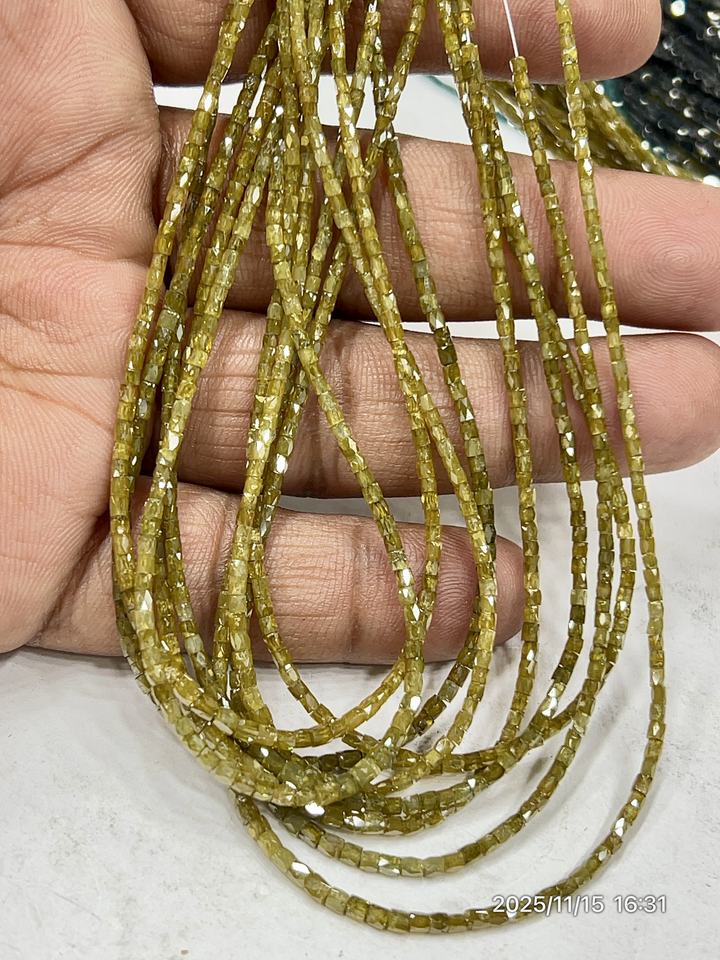 AAA Natural Bright Green Diamond Tube Pipe Shape Beads 17 Inches Strand Size 3-4mm Long
