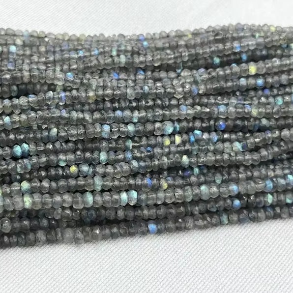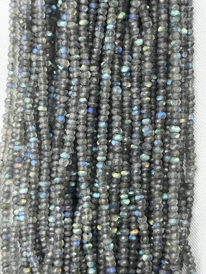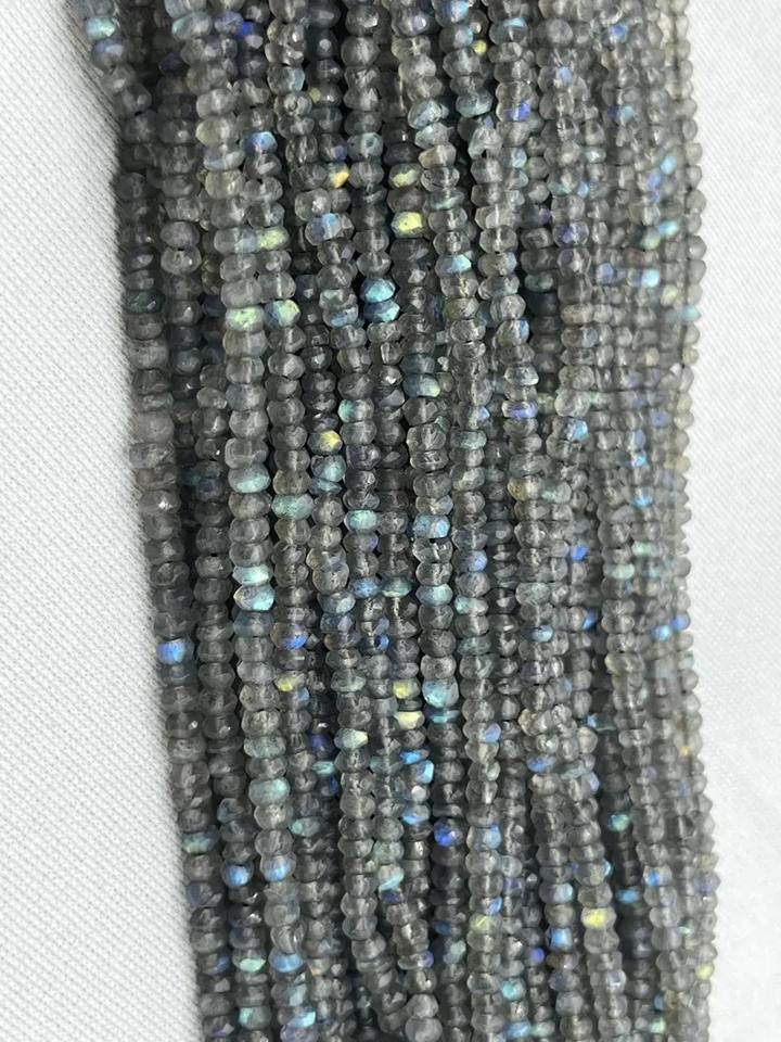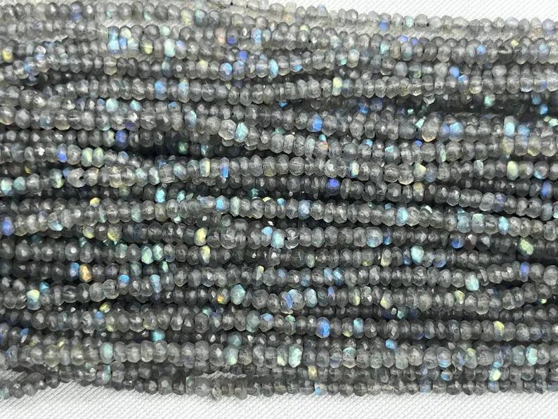 AA Natural Labradorite Faceted Rondelle Beads 4mm Blue Fire Color 13 Inch Loose Third Party Certified Rajasthan Jewelry