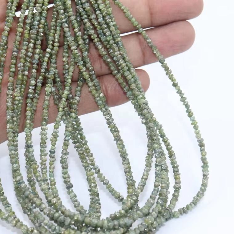 AAA Natural Green Diamond Beads 3 mm Uncut Raw Stone 16-Inch Rough Uncut Diamond Bead