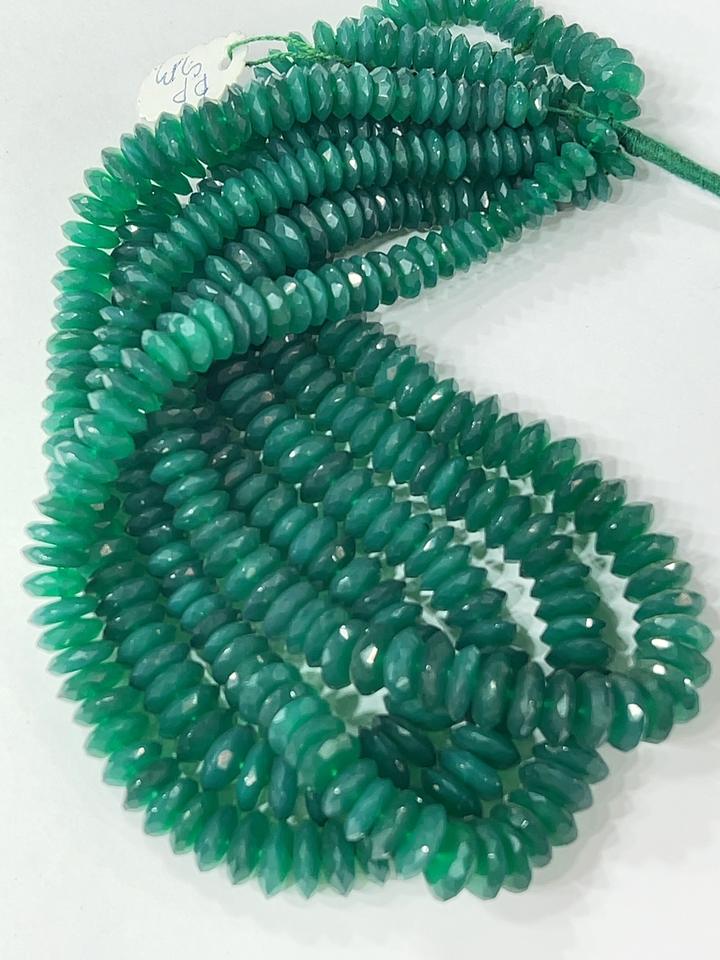 AAA Natural Green Onyx Rondelle Beads 8-10mm German Cut Faceted 14 Inches Strand