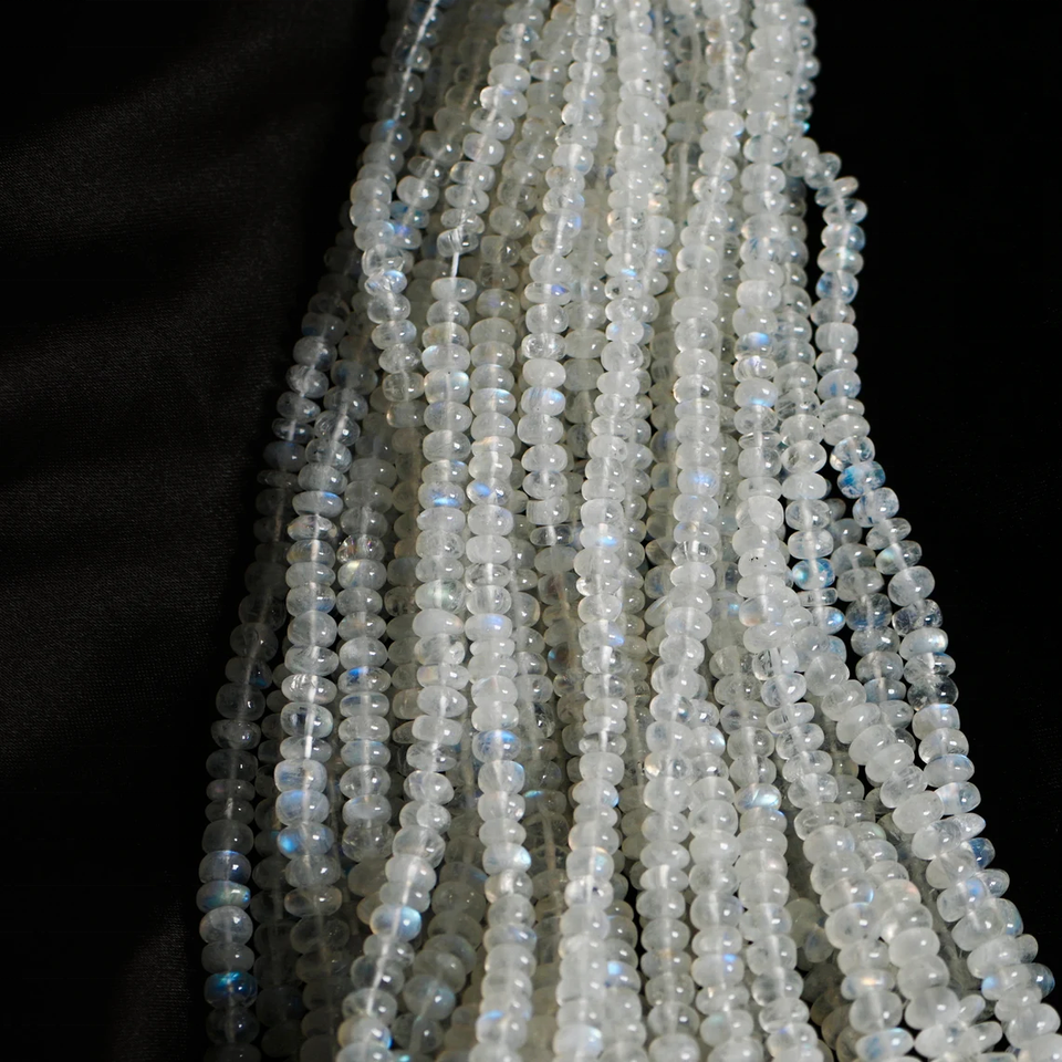 AAA+ Natural Rainbow Moonstone Rondelle Beads 6mm Smooth Gems for Jewelry Making Loose Flashy Gemstones