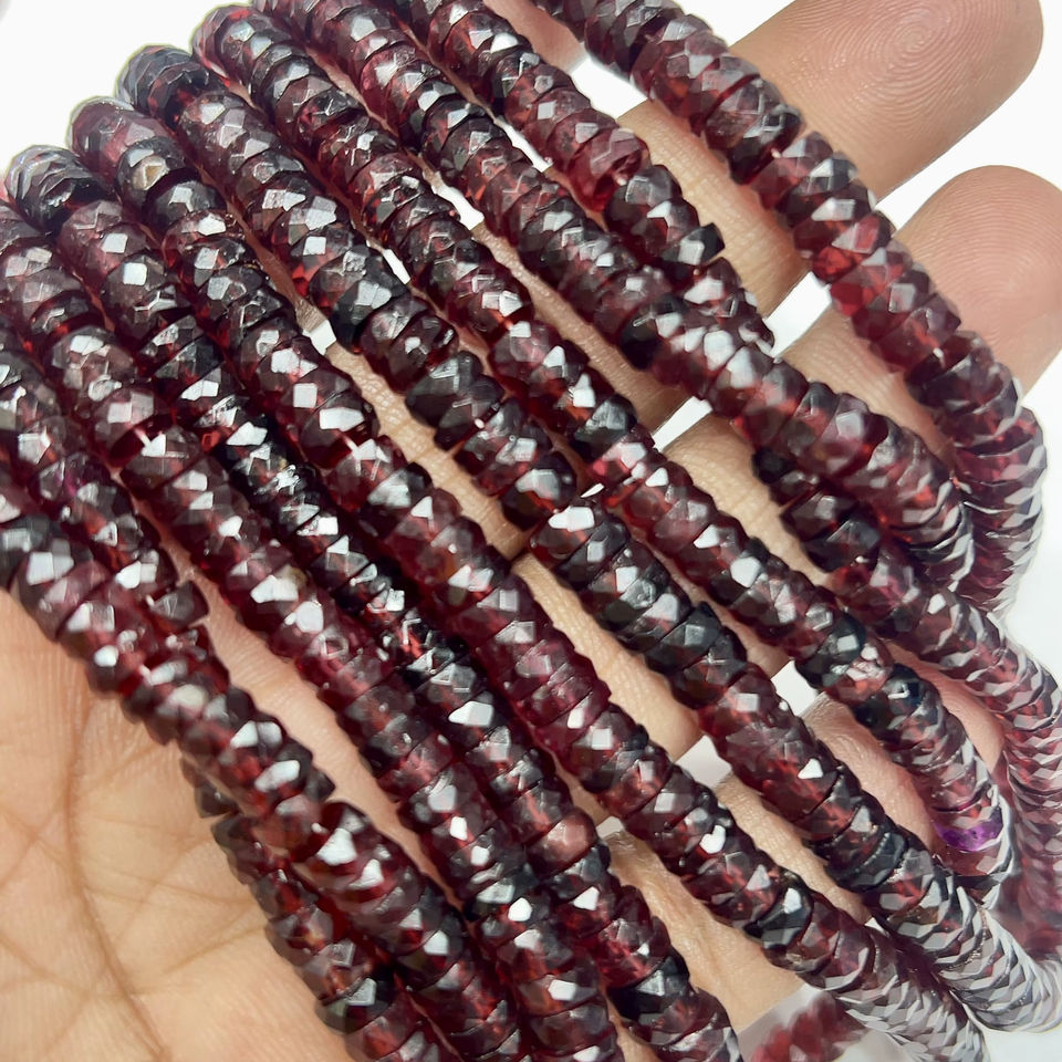 AAA Natural Red Garnet Faceted Heishi Tyre Shape Beads 14 Inch Strand 6–7mm Approx