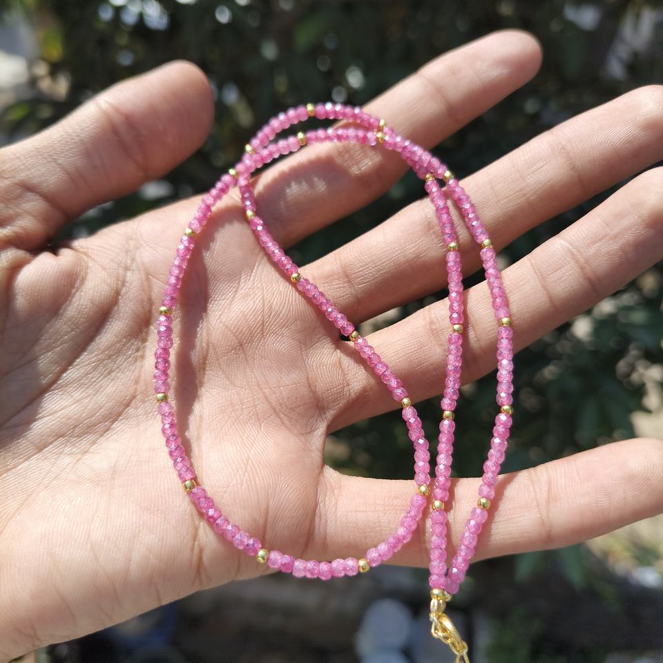 AAA+ Pink Sapphire Faceted Rondelle Beads Sterling Silver Statement Necklace 3mm Genuine Natural Wedding