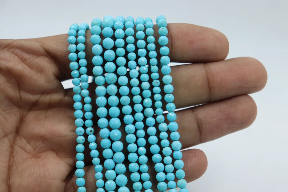Quality 100% Natural Arizona Turquoise Faceted Round Beads