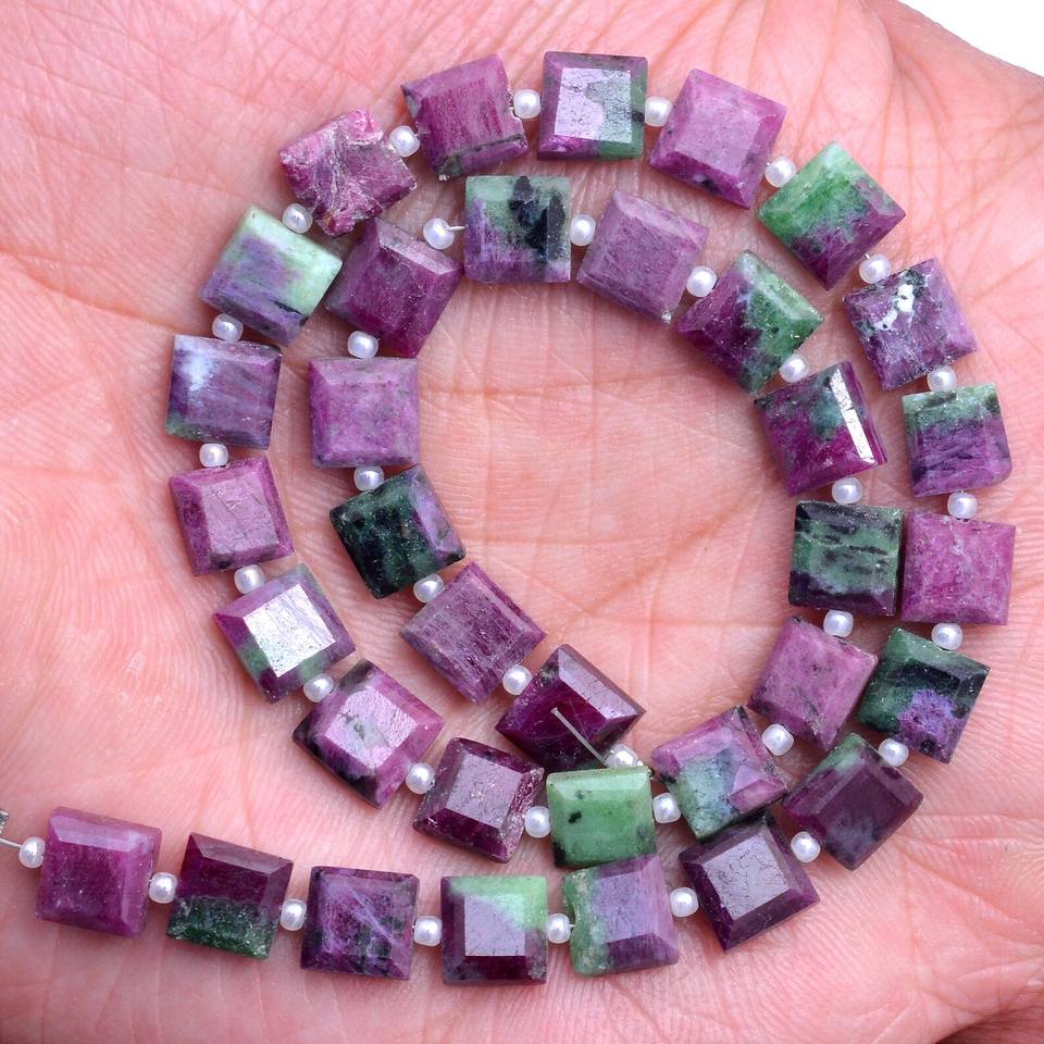 AAA Rare Ruby Zoisite 7mm-8mm Faceted Square Beads Natural Ruby Zoisite Semiprecious Gemstone Briolette Beads for Jewelry Making