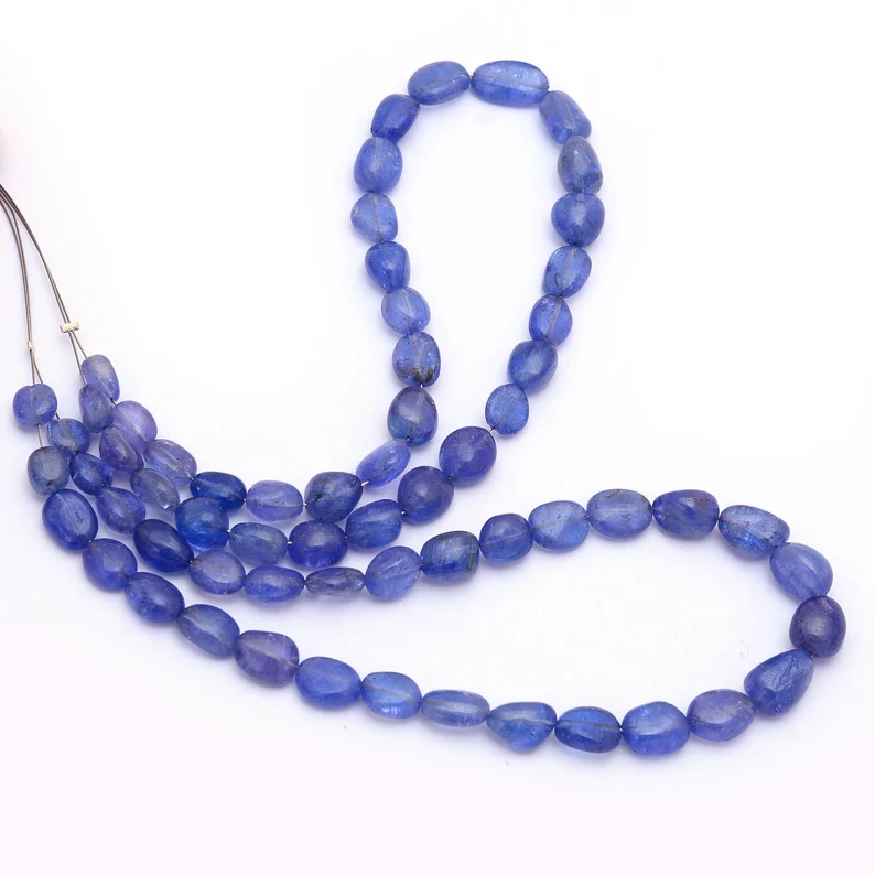AAA Tanzanite Gemstone 7mm-9mm Smooth Oval Nuggets Beads |10" Strand| Natural Tanzanite Gemstone Loose Tumbled Beads for Jewelry