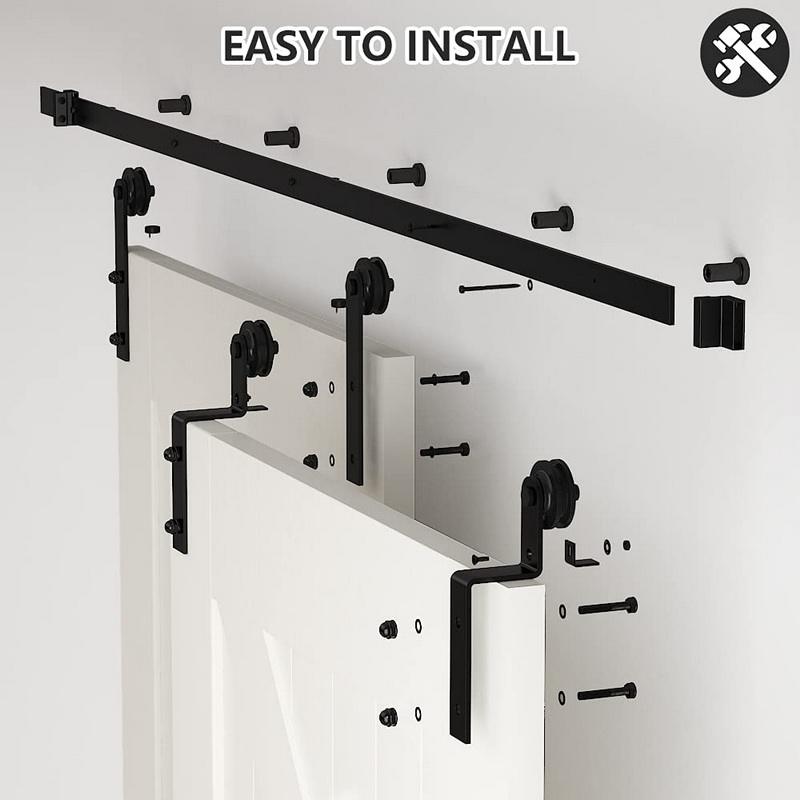 AAG Recessed Barn Door Bottom Double Track Door Exterior Interior Industrial U-Shape Bypass Sliding Barn Door Hardware Kits