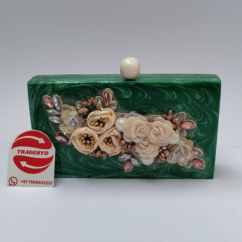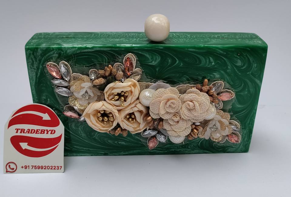 AALIYAN IMPEX Best Selling Women's Evening Clutch Hand Bag Folk Art Style Resin Pearl Decoration Popular Love Pattern for Gifts