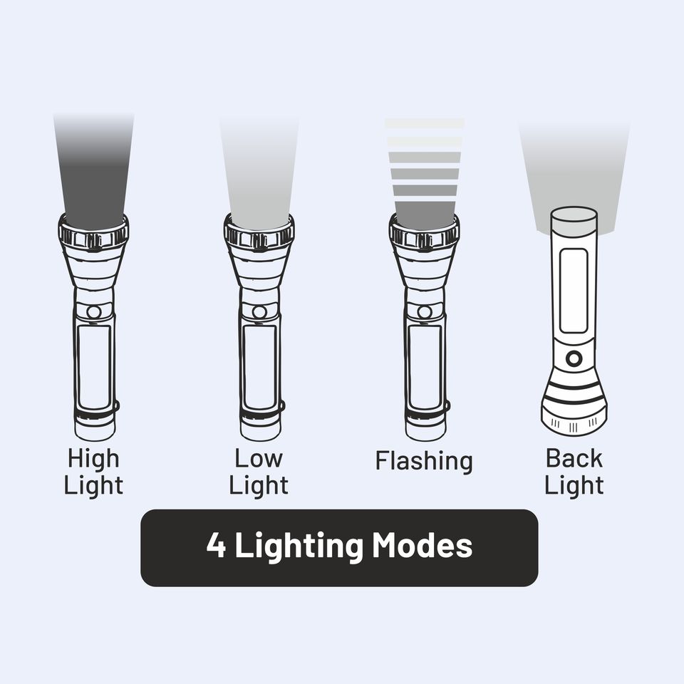 ABS Body LED Torch with 2000mAh Battery Long Beam Throw Emergency Side Light & Versatile Modes for Everyday Use