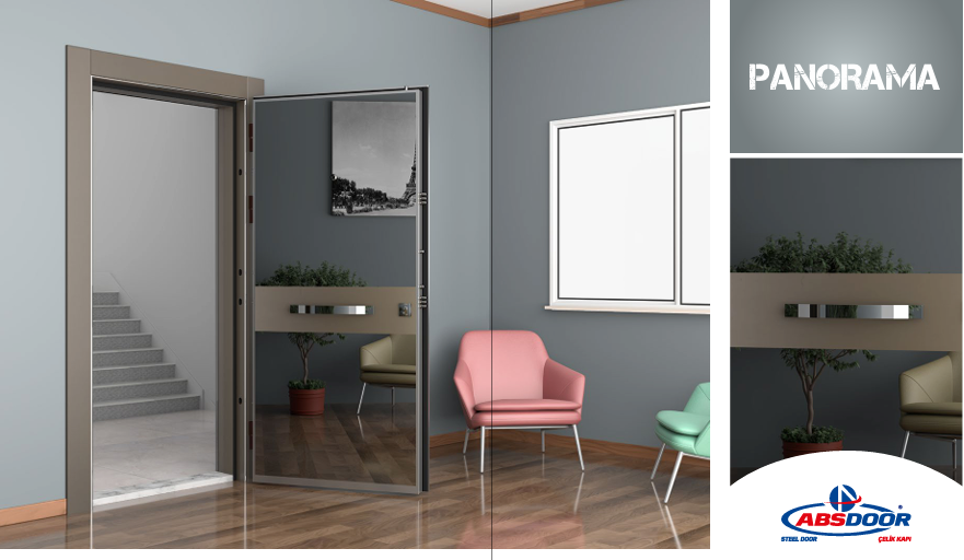 ABSDOOR PANOROMA Interior Steel Door Shiny Leaf Look Manual Security for Hotel Apartments Entrances Direct Factory