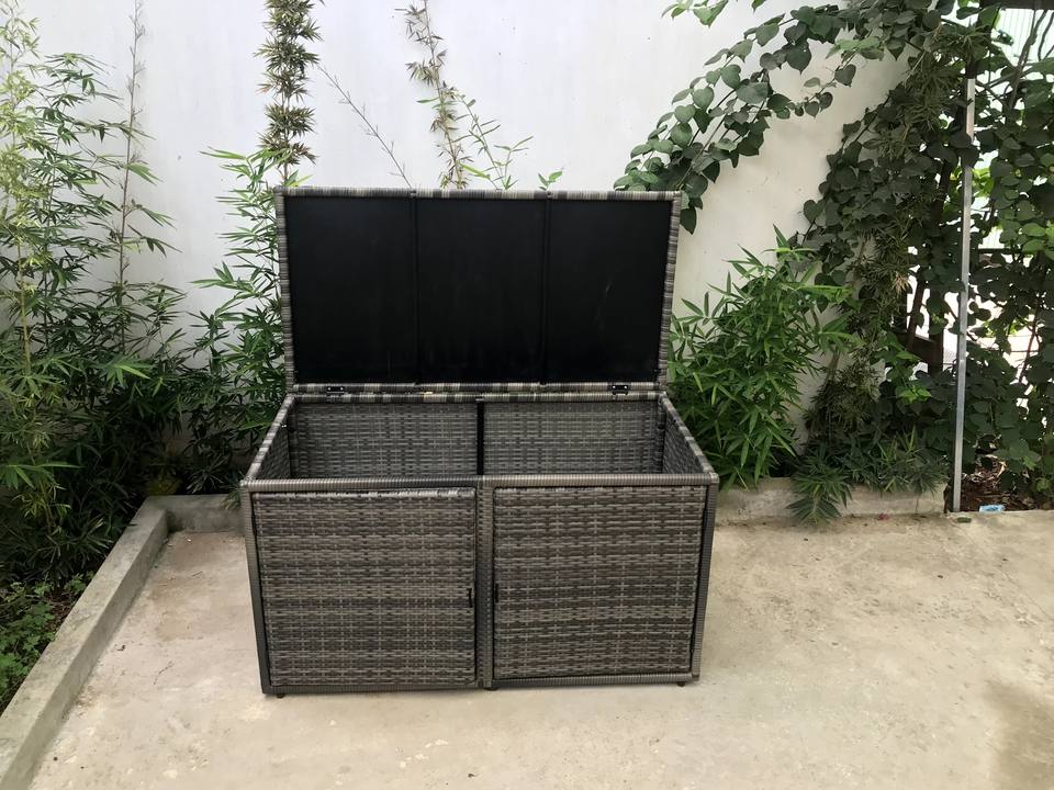 AC00031 Modern All-Weather Outdoor Gray Garden Set All-Weather Wicker Patio Storage Box Rattan Aluminum Metal Courtyard Villa