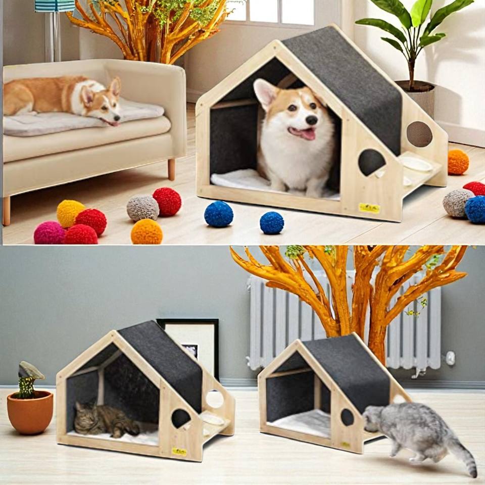 AC08 Wooden Pet Kennel With Fixed Structure Raised Base For Home Use Cats And Dogs Vietnam OEM Manufacturer