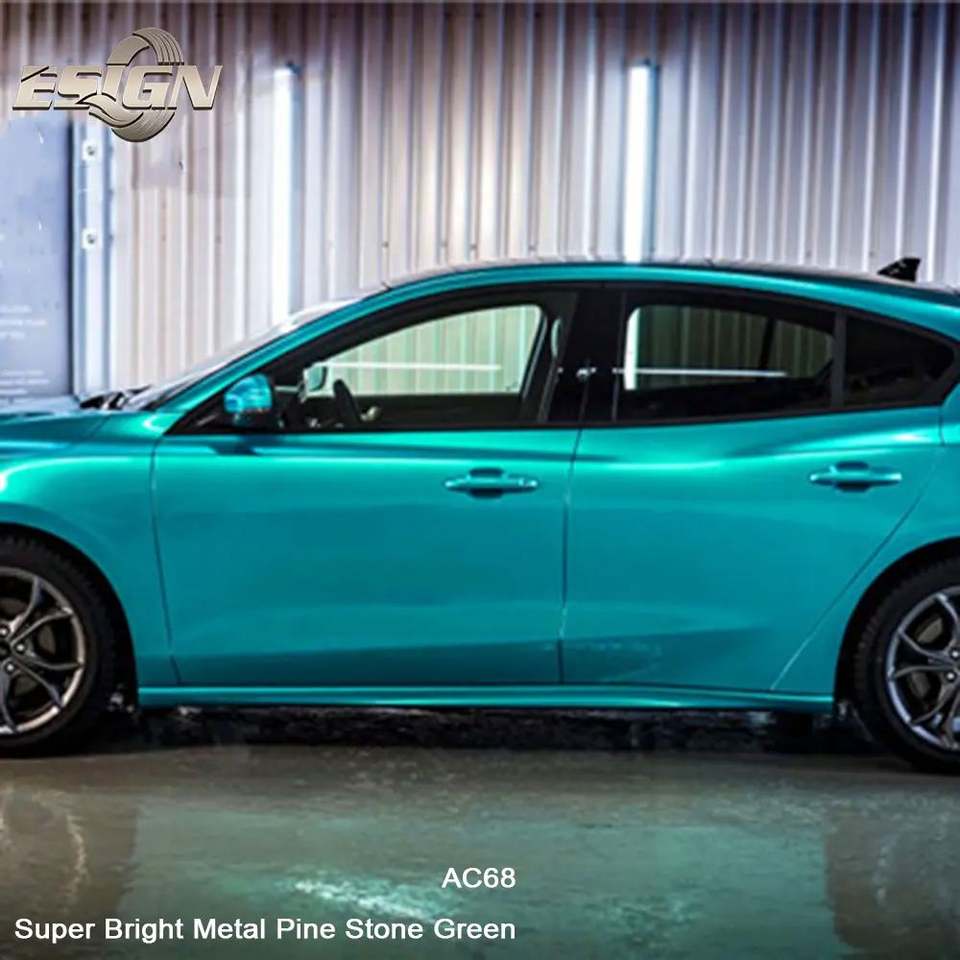 AC68 Self-Adhesive Vinyl Film Super Bright Metal Pine Stone Green Full Roll Car Wrap Color Changing and Anti-Scratch Function