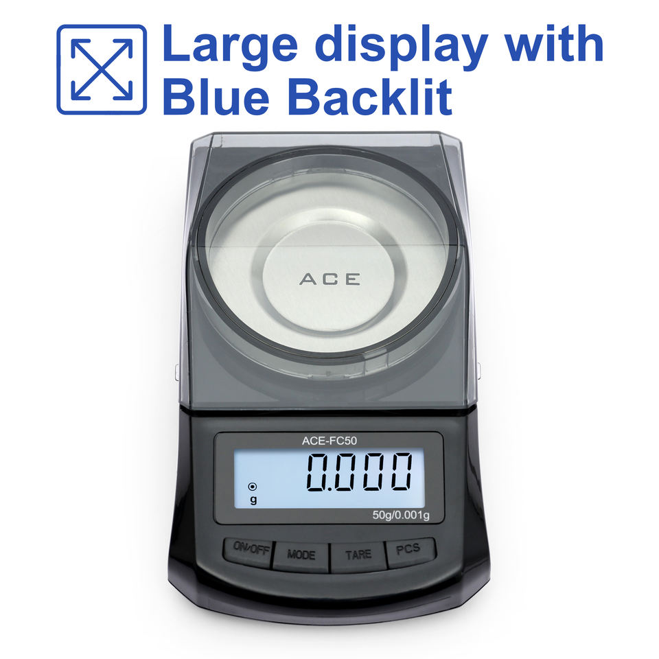 ACE FC-50 Precise Medicine Jewelry Scale Digital 1mg Lid Gold 50g/0.001g Pocket Size Battery Backlight LCD Weight Measuring