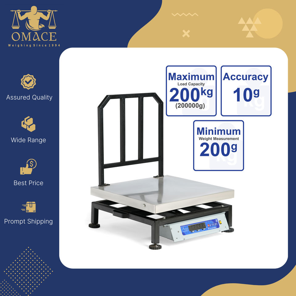 ACE India-Origin Stainless Steel Digital Commercial Table Top Pole Type Weighing Scale LED Display 200kg Load Capacity 1 Year