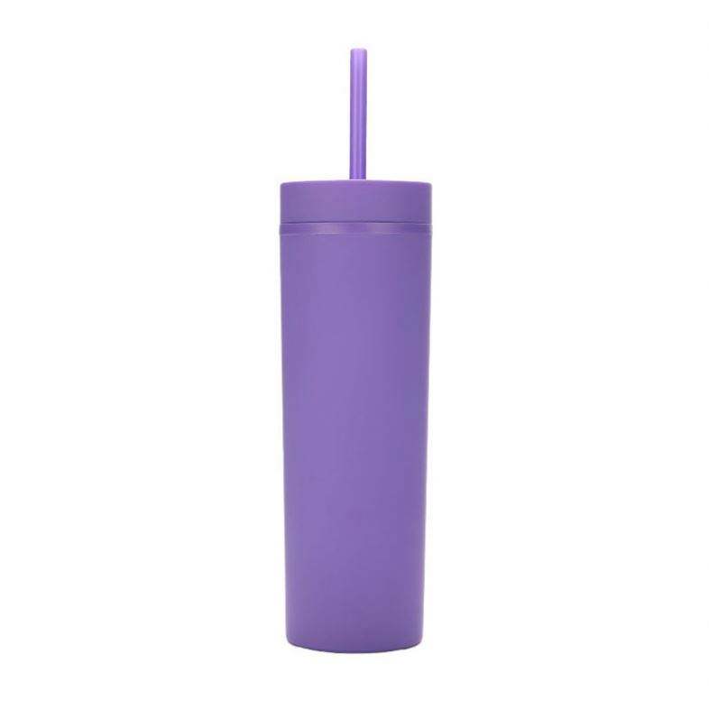 ACRYLIC TUMBLER 16Oz Double Wall Skinny Bottle With Straw Clear Plastic Drinking Cup