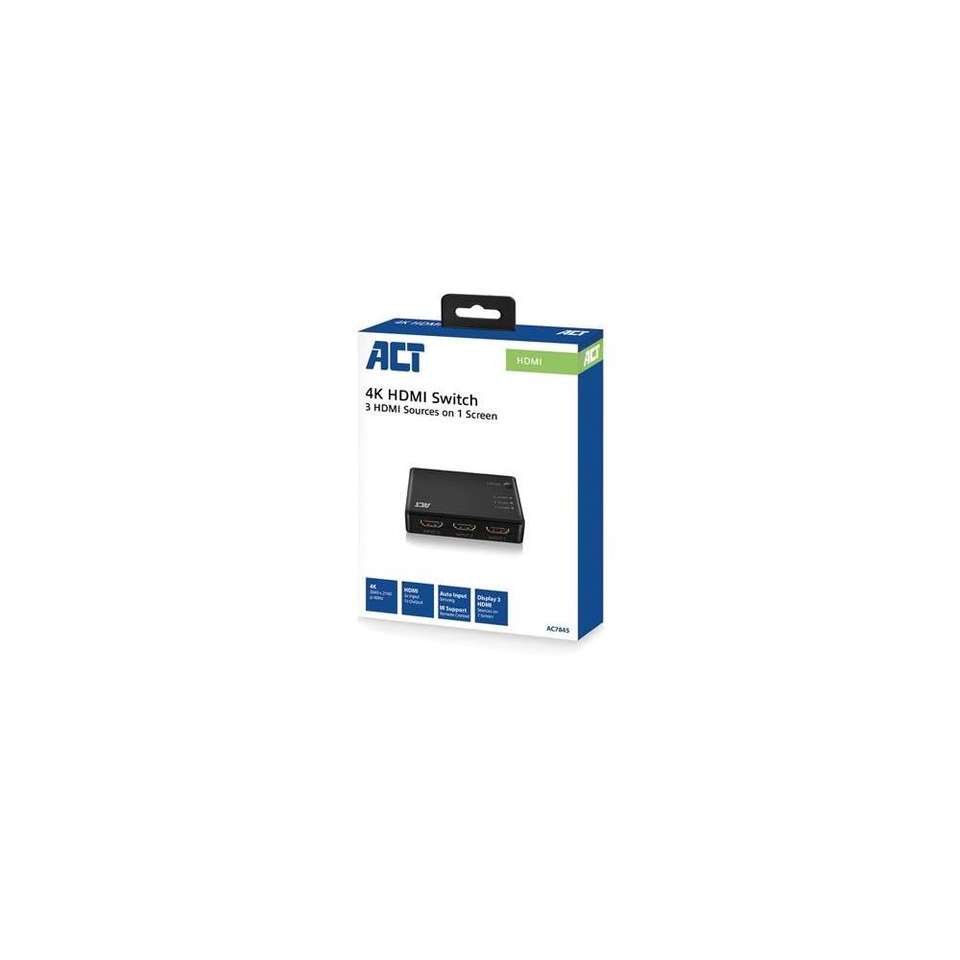 ACT 4K HDMI switch 3 ports, display 3 HDMI sources on one monitor.
