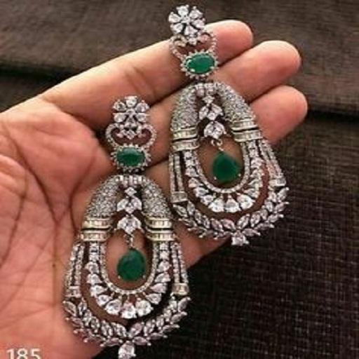 AD DIAMOND LONG EARRING GREEN COLOR DIAMOND LONG EARRING by M CREATION