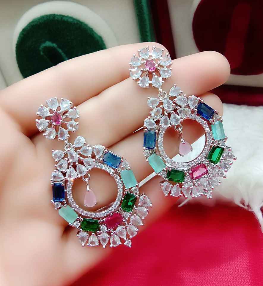 AD Diamond Earrings Studs Chand Bali Round Shape multi for Women and Girls Stylish Handmade Bulk Product