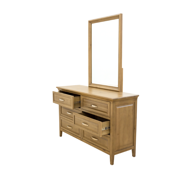 ADELA Brand 6-Drawer Wooden Dresser with Mirror Solid Wood Bedroom Furniture Best Price Low MOQ Ready-to-Assemble From Vietnam