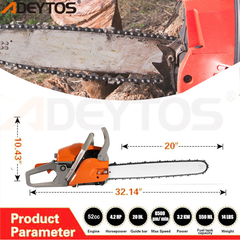 ADEYTOS Manufacturer High Quality Cutting Chainsaw 2 Stroke 5200 52cc 5800 58cc Petrol Gasoline Chainsaw for Wooden Cutter