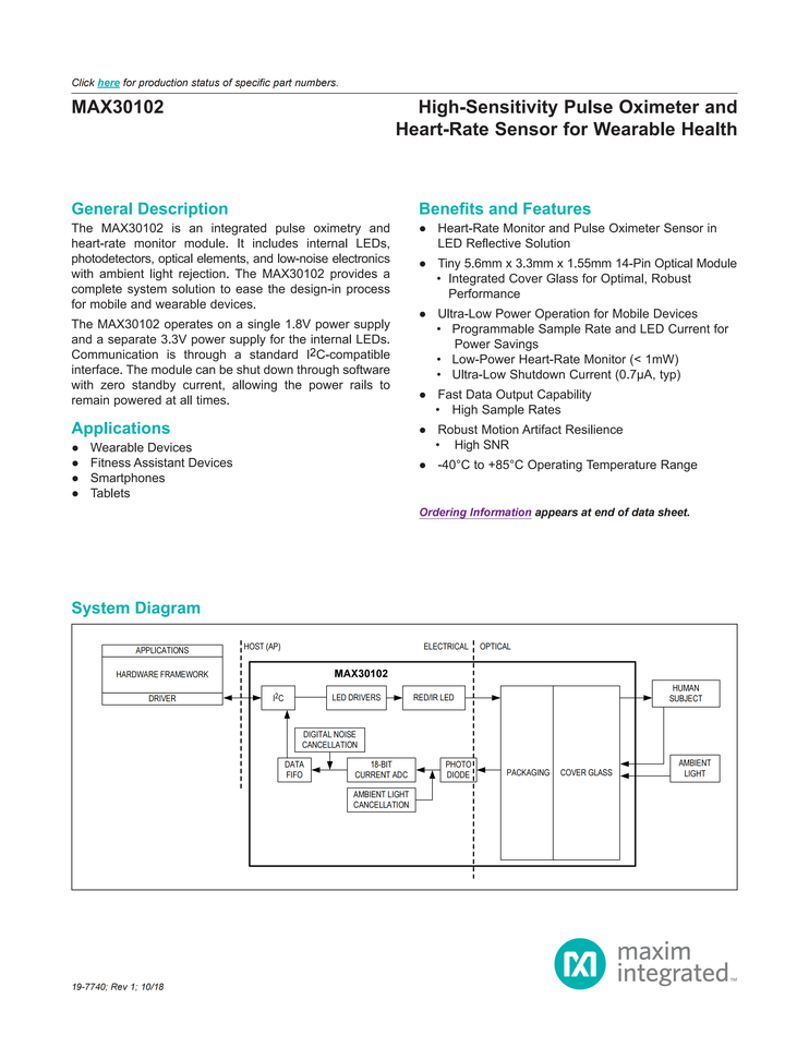 SENSOR - OXIMETER/HEART RATE I2CManufacturing Date Code