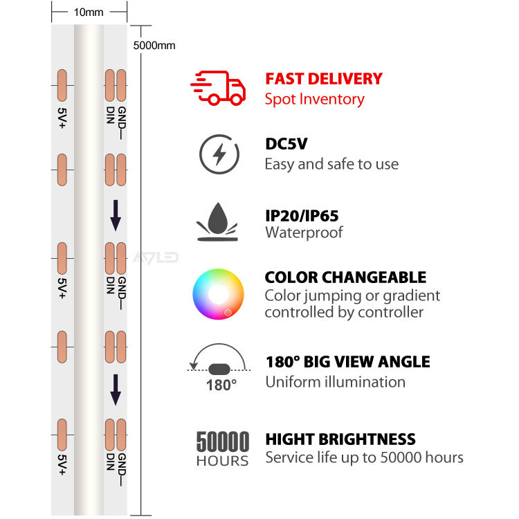 ADLED RGBIC COB LED Strip Light 5mm WS2811 ROHS Certified Remote Control Addressable RGB Smart LED Strip