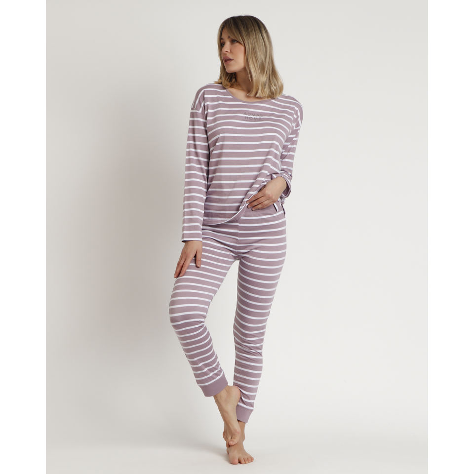 ADMAS HOME Oversize Stripes Printed Nightgown for Women Breathable Spandex Pajama with Elastic Waist Homewear