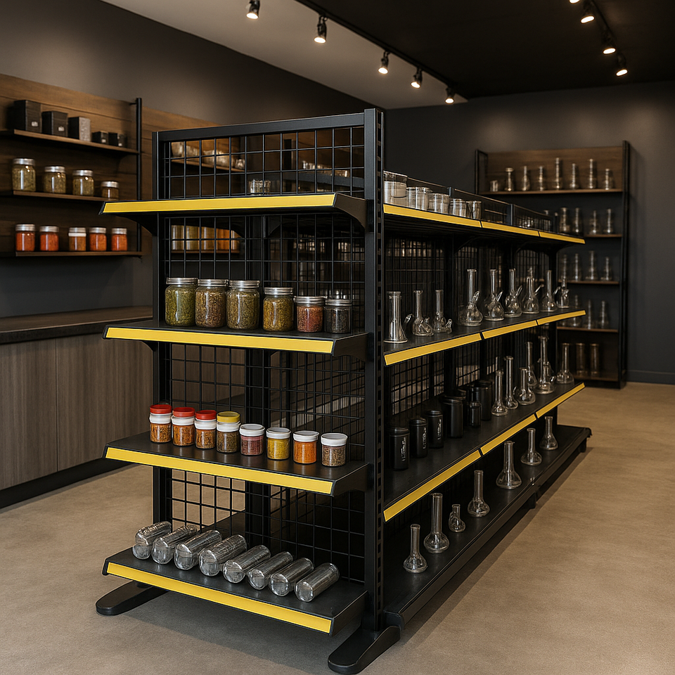 product display, Double-Sided Wire Grid Gondola Shelf, Heavy-duty Metal Store Shelf, Wire Mesh Gondola Display, Freestanding Retail Display Shelf