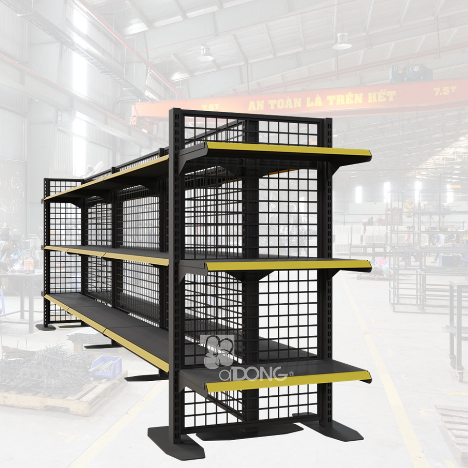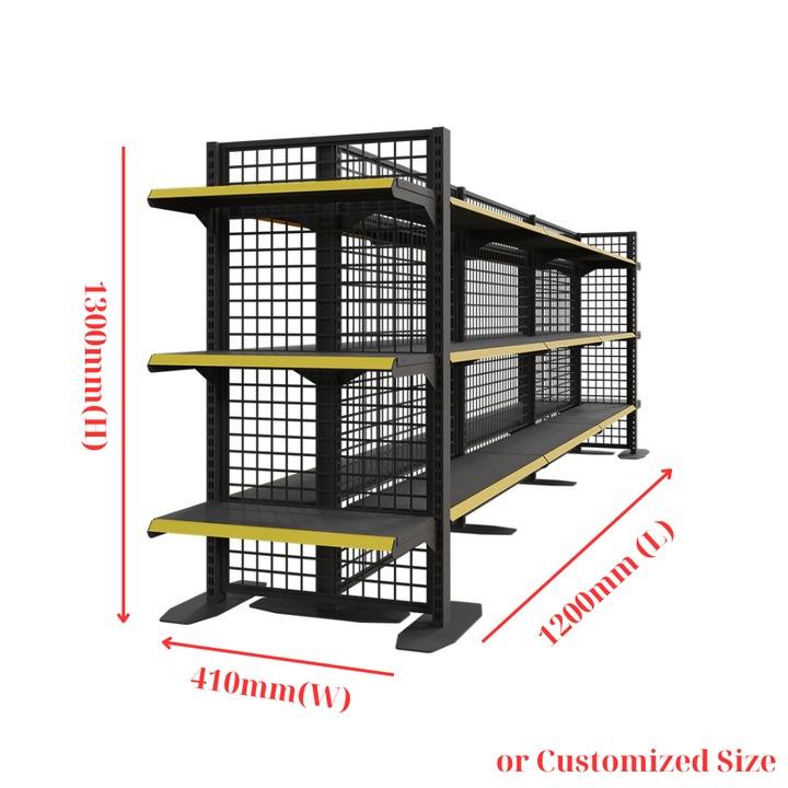 Shelf Type:product display, Double-Sided Wire Grid Gondola Shelf, Heavy-duty Metal Store Shelf, Wire Mesh Gondola Display, Freestanding Retail Display Shelf