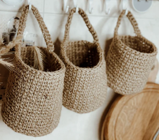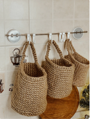 Product name:Jute crochet hanging baskets, Hanging Wall Baskets