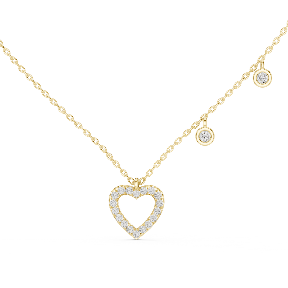 AFFORDABLE 18KT YELLOW GOLD RHODIUM PLATED CHAIN HEART PENDANT CHARMS ADORNED LAB GROWN CUT DIAMONDS THIRD PARTY CERTIFIED DAILY