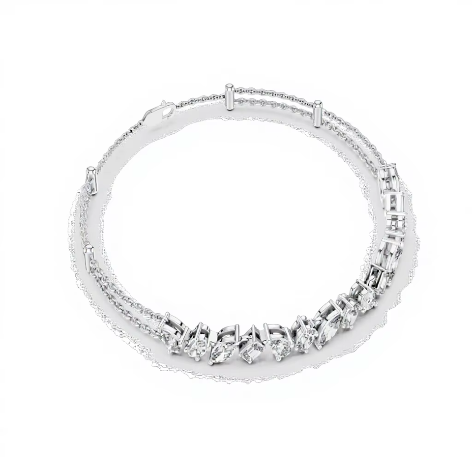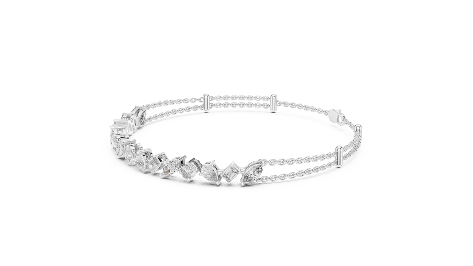 AFFORDABLE LAB GROWN MIX CUT DIAMOND BRACELET SET 18KT SOLID WHITE GOLD RHODIUM PLATED MINIMALIST GIFTING PARTY WEAR EVERYDAY