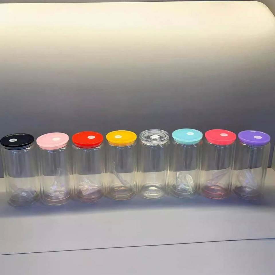 AGH New Arrival 16oz Clear Plastic Acrylic Libby Beer Glass Shaped Jar Can With Colorful Lid for Summer Gift DIY