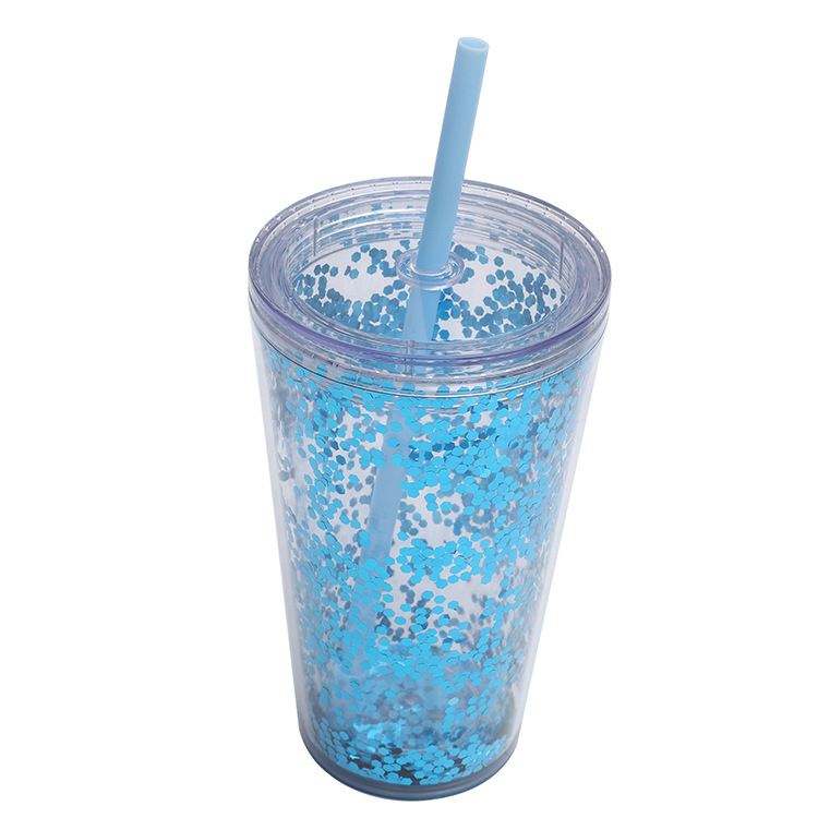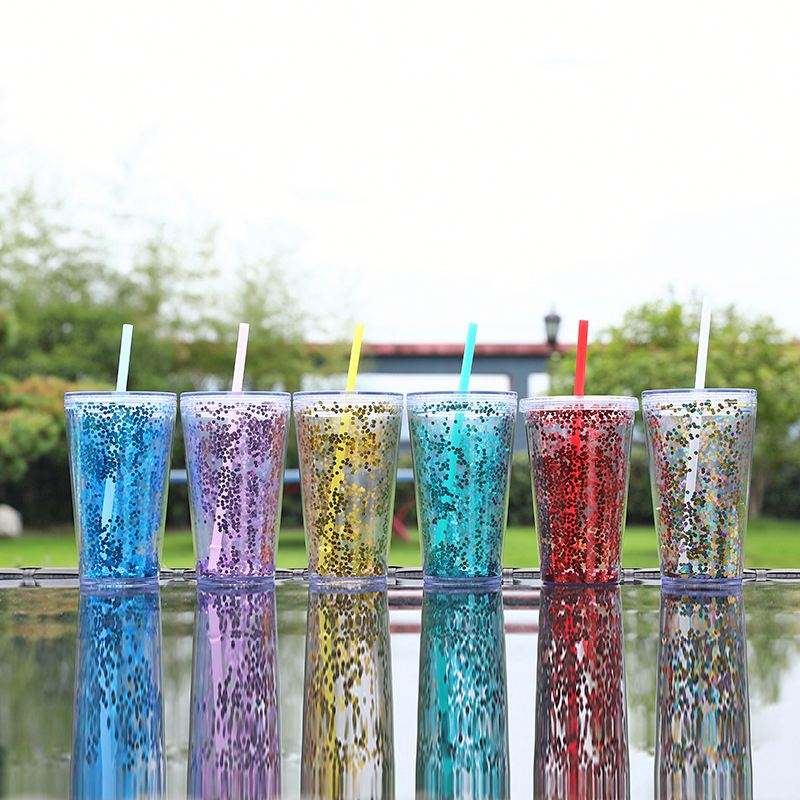AGH Wholesale 16oz 24oz Double Wall Snow Globe Acrylic Tumbler Pre-Drilled Plastic Cup With DIY Lids Straw