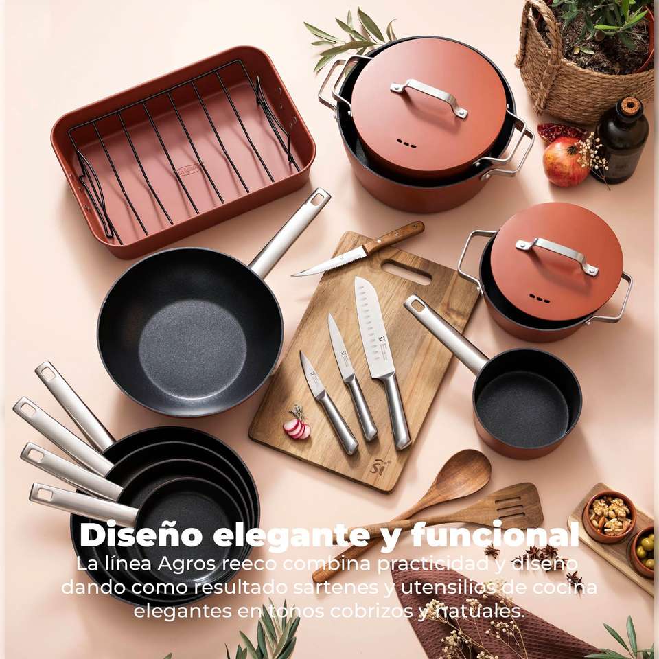 AGROS San Ignacio 2L 20x8.5cm Casserole Set with Aluminum Lid + 3 Wooden Kitchen Utensils