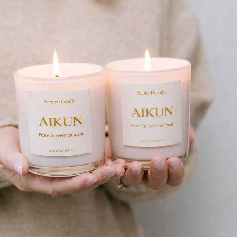 AIKUN Private Label Candle with Cedarwood & Cashmere Vanilla Glass Jar Natural Soy Wax Aromatherapy Candle for Wholesale Orders