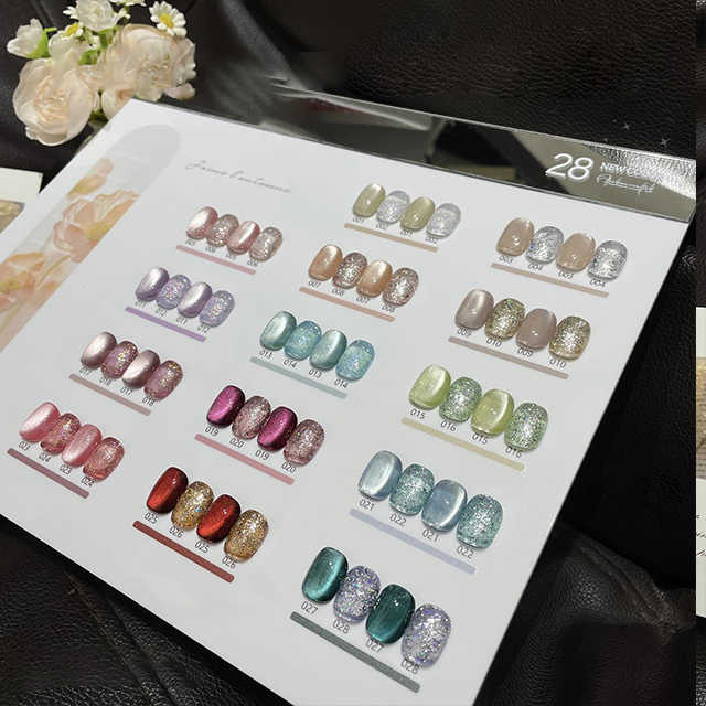 AILANUO 28-Color Nail Supplies Set 15 ml UV Gel Box & Moonlight Neon 9D Cat Eye Polish HEMA Free for DIY with LED Lamp Source