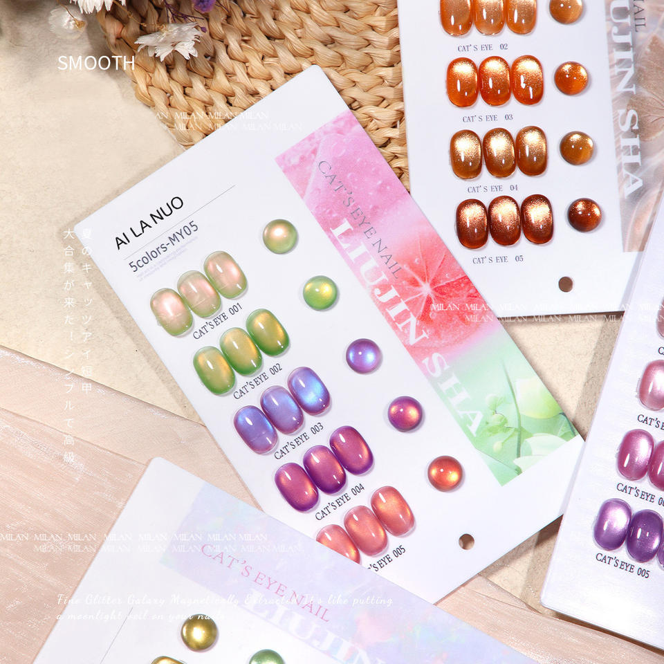 AILANUO 6 Styles Cateye Gel Polish Set 5 Colors Magnetic UV Gel Polish Pink Red Gold Reflective cat Eye Gel Polish for Salon