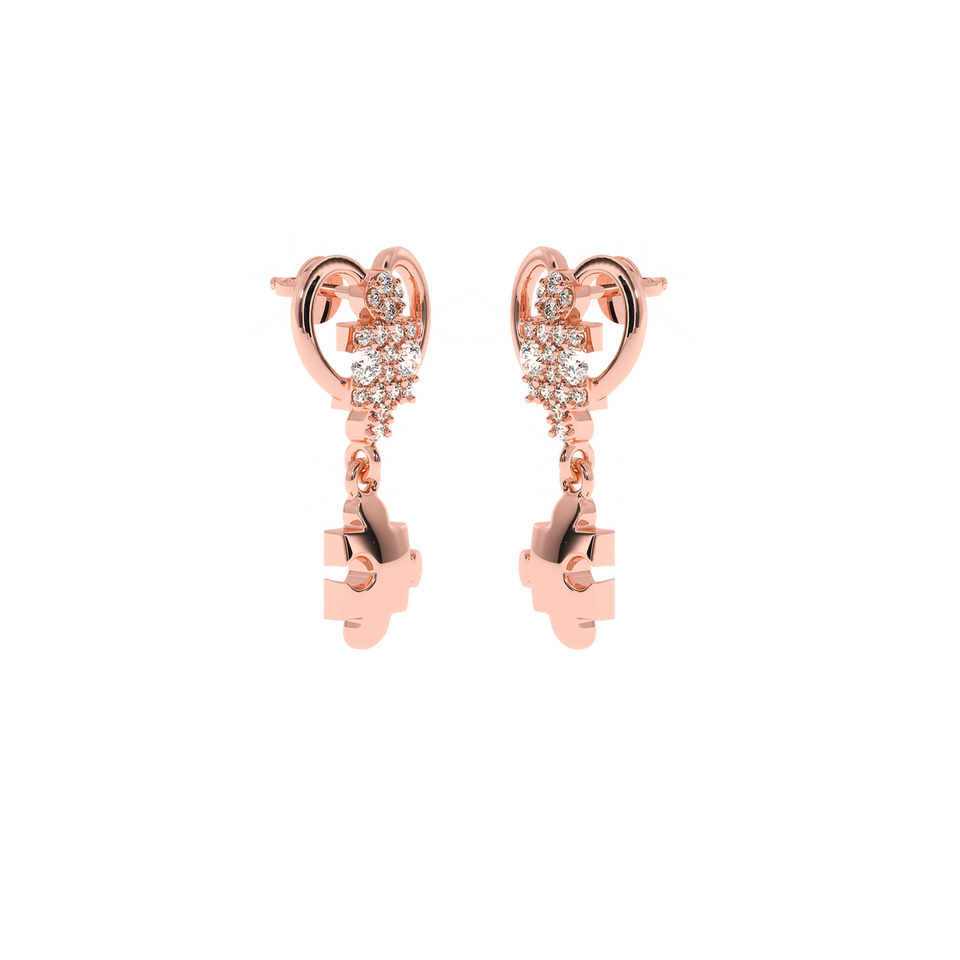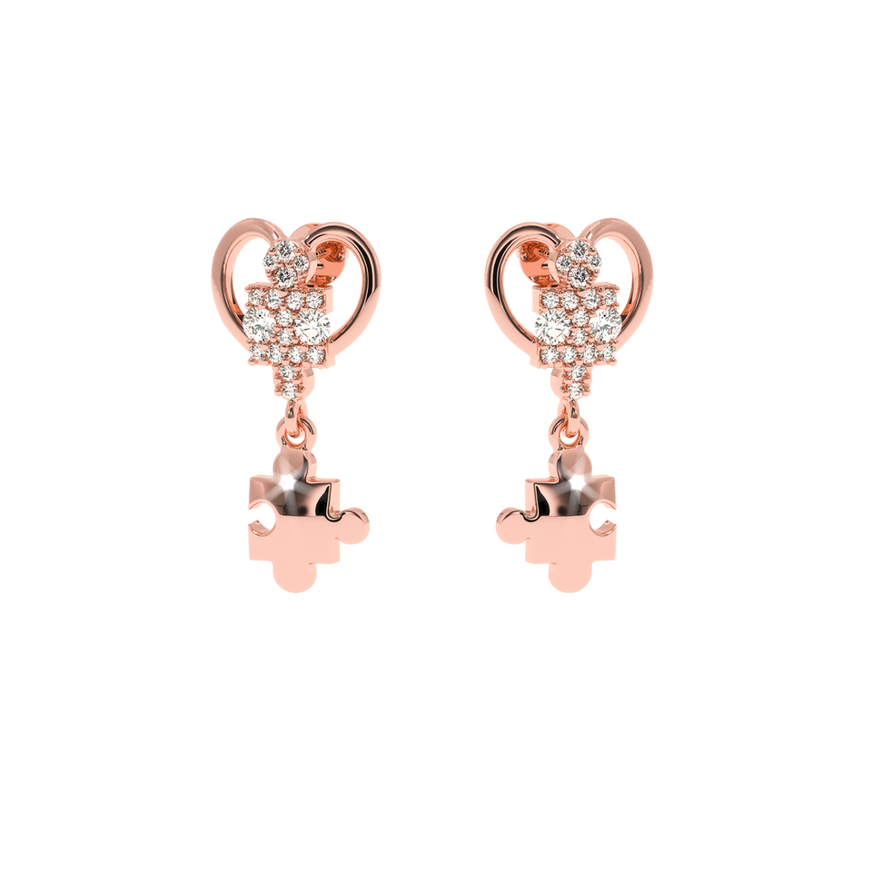 AJRETAIL Unique White Gold Puzzle Heart Drop Diamond Earrings 0.17 CT Natural HI Color VS-SI Clarity Gift Jewelry