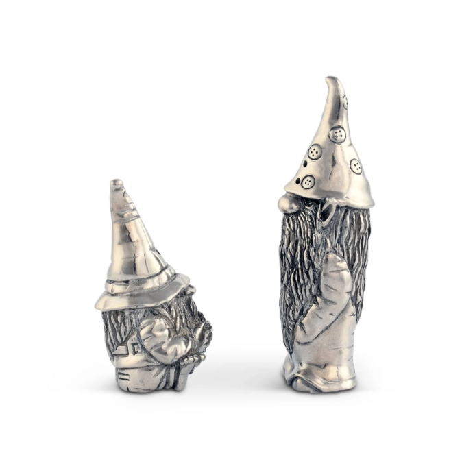 AK Brass Aluminum Gnome Shape Salt and Pepper Sprinkler In Silver Antique Finished Set Of 2 For Kitchenware / Dining Table