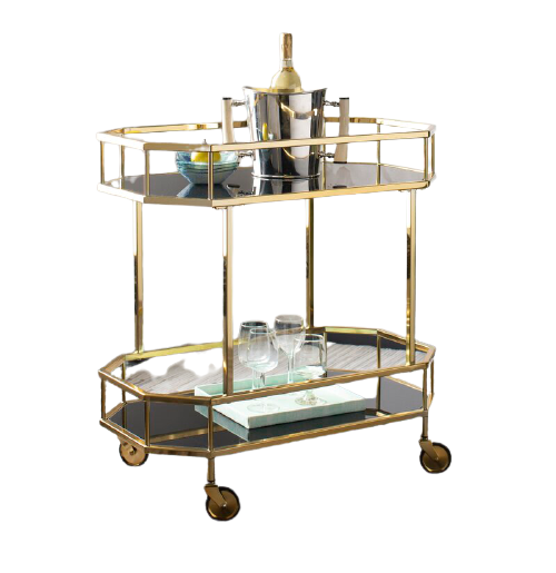 AK Brass Attractive Metal Bar Carts Gold Finished With 2 Tier Glass Decorative Trolley For Hotel Furniture / Bar Furniture