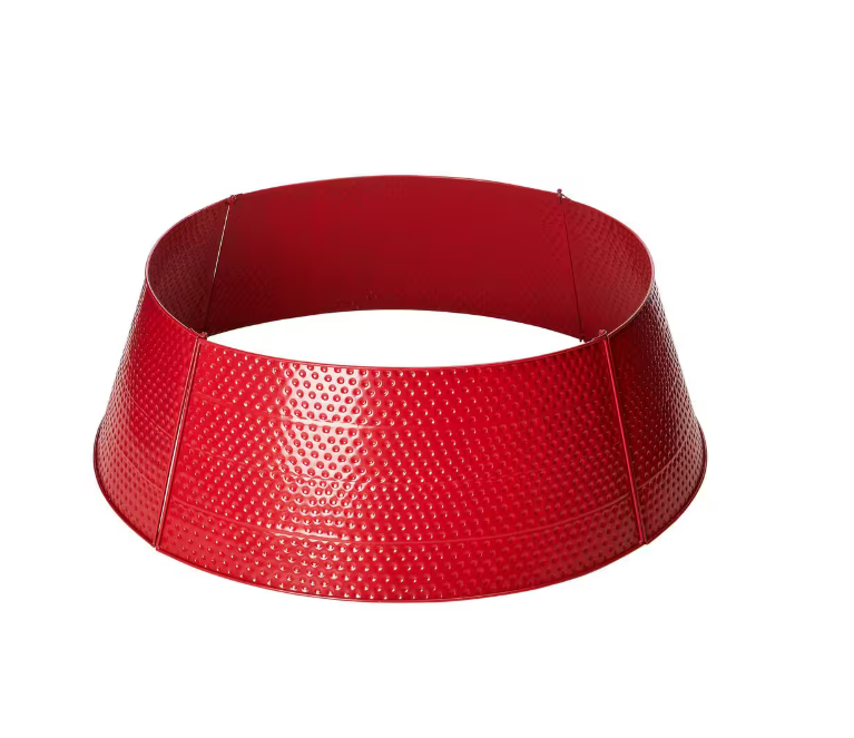 AK Brass Hammered Metal Round Christmas Tree Stand in Red Finish Eco-Friendly High Quality Home & Christmas Decor Item