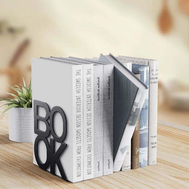 AK Brass Book Design Metal Bookends in Black Powder Coated Finished Set of 2 For Shelf Decor / Desk Decor