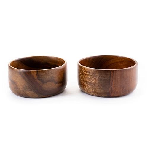 AK Brass Chip & Dip Round Wooden Bowl In Walnut Color Set Of 2 With Metal Stand In Gold Finished For Tableware / Kitchenware