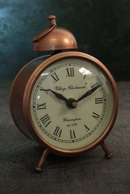 AK Brass Copper Finished Roman Dial Metal Table Clock with top Round Hook For Shelf Decor / Desk Decor