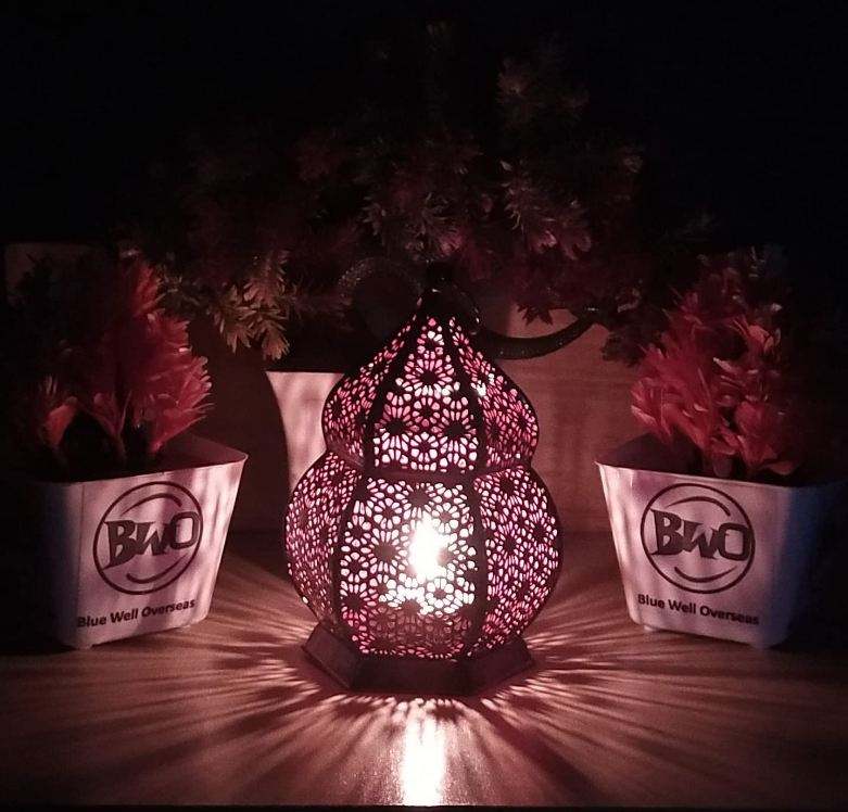AK Brass Decorative Metal Lantern With Gold Finished Set Of 2 Modern Style Candle Jar For Cafe Decor / Home Decor