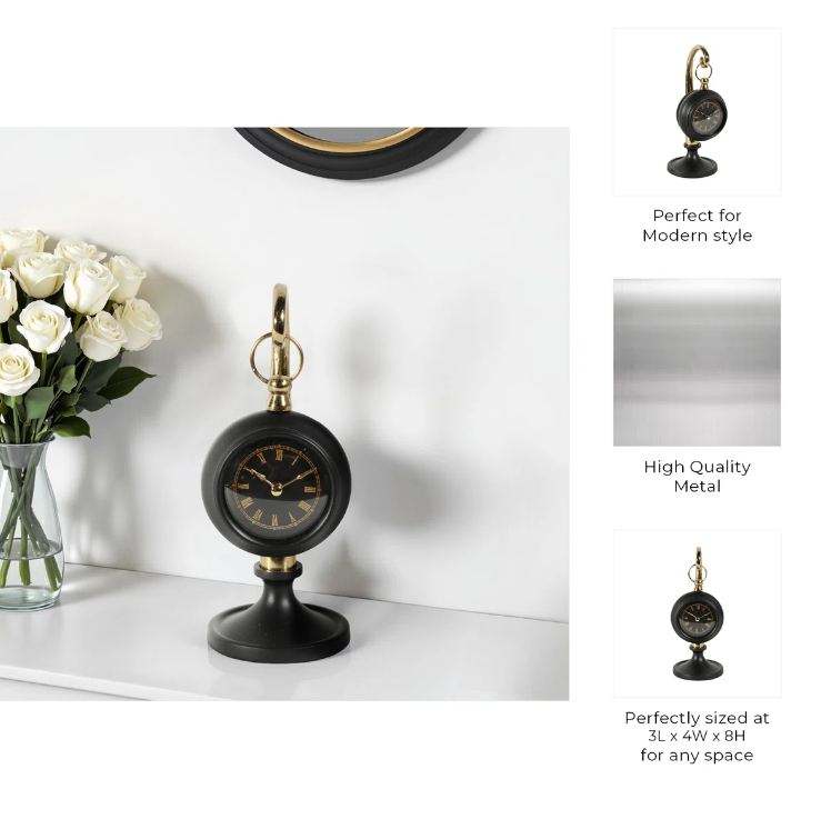 AK Brass Decorative Metal Table Clock with Round Base Stand in Brass & Black Finished For Gifting & Living Room Decor