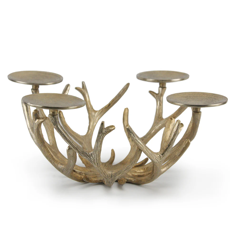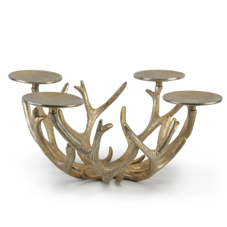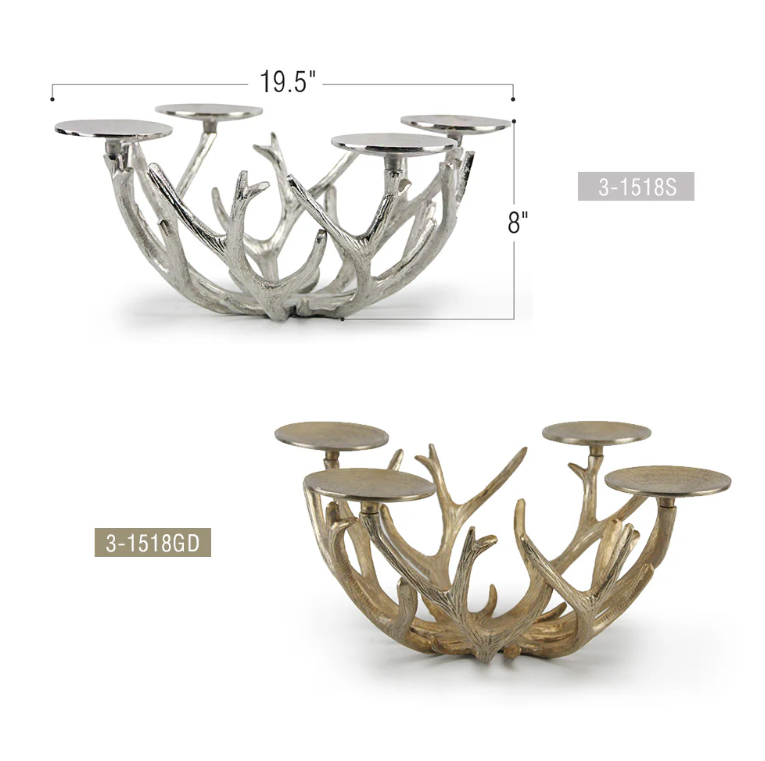 AK Brass Deer Antler Metal Candle Holder with 4 Arms Set of 2 In Gold & Silver Finished For Festival Decor / Special Occasion