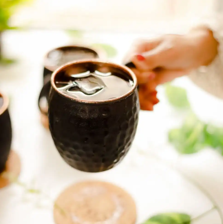 AK Brass Hammered Copper Mug with Handle in Black Finished Set of 2 Customized Copper Mug For Daily Use / Festival Gifting